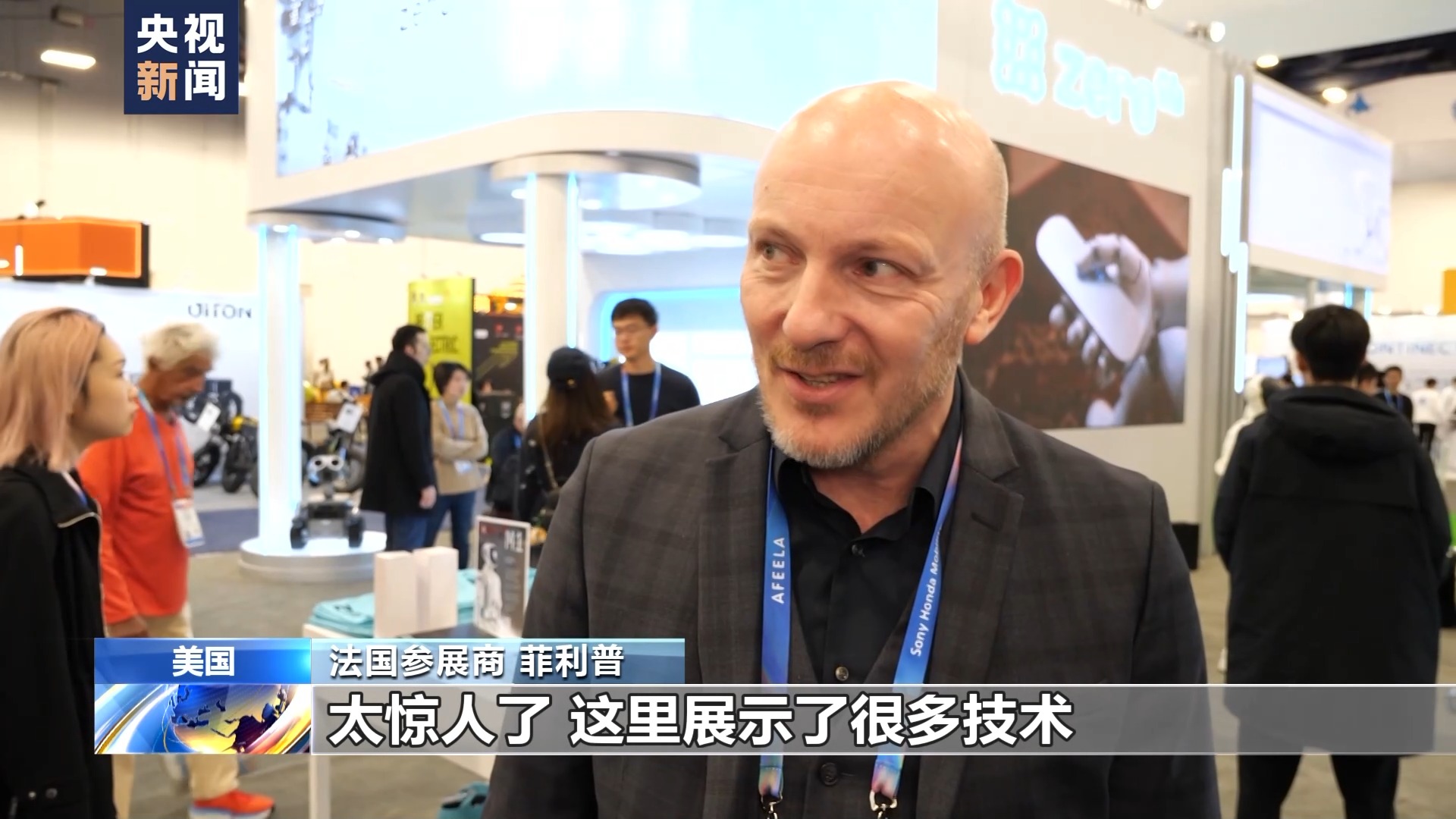 美国观展者 詹姆斯:当我们进入一个新的技术时代,拥有这些新设备,会让生活变得更轻松、更有趣。这样的技术让每一天都不会无聊。我觉得中国公司毫无疑问是这场技术变革中的引领者,没有任何争议。