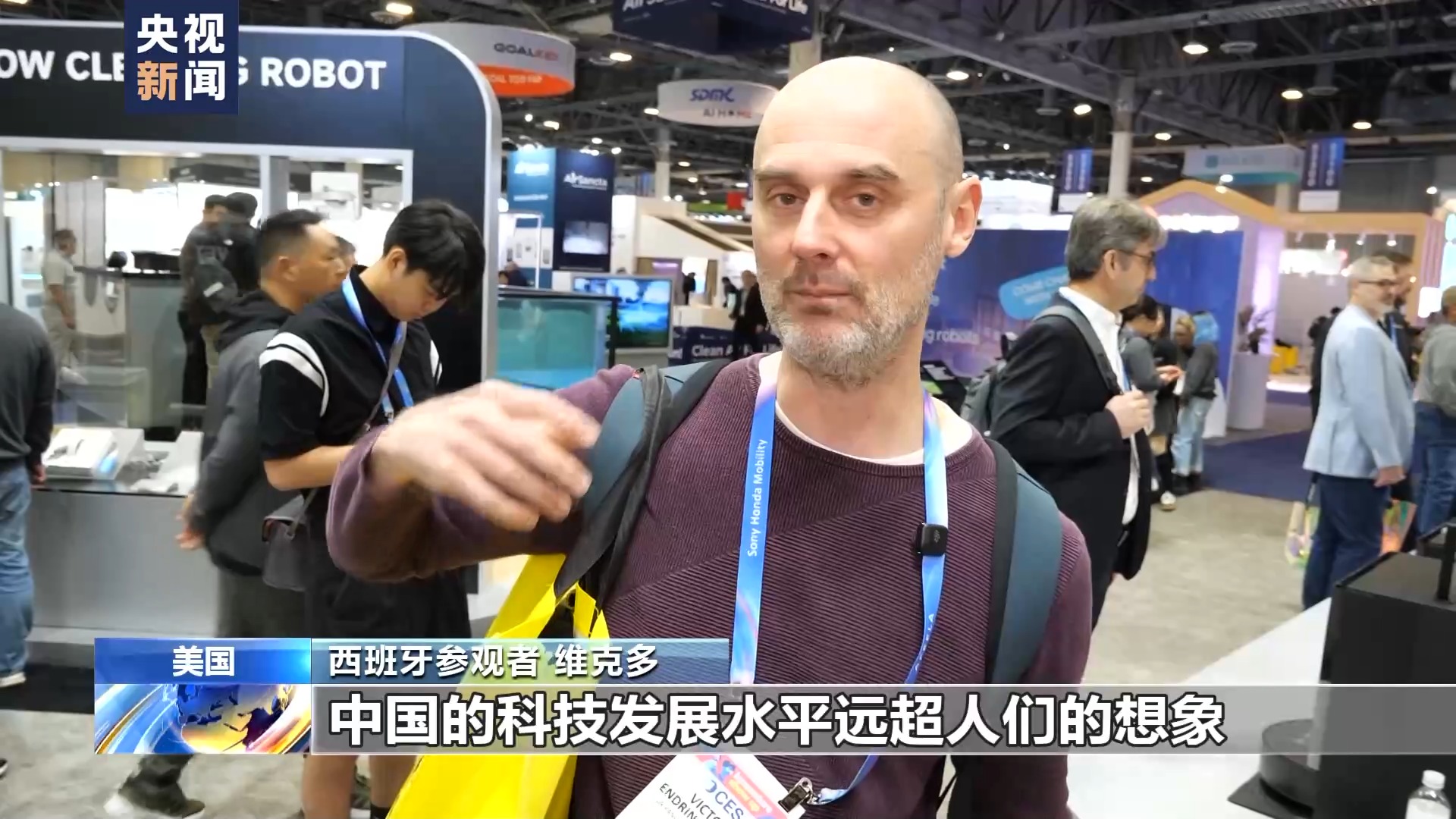西班牙参观者 维克多:中国的科技发展水平远超人们的想象,而且发展速度也更快,有一天中国的机器人可能会引领世界。